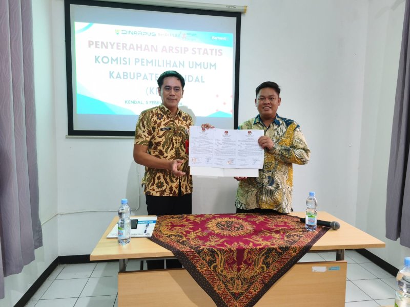 Kendal - Komisi Pemilihan Umum (KPU) Kabupaten Kendal, menyerahkan arsip statis ke Dinas Kearsipan dan Perpustakaan setempat. Penyerahan ini bertujuan, untuk menjaga kelestarian dokumen historis terkait penyelenggaraan pemilu dan pemilihan di Kabupaten Kendal serta mendukung pengelolaan arsip daerah yang lebih terintegrasi dan profesional.