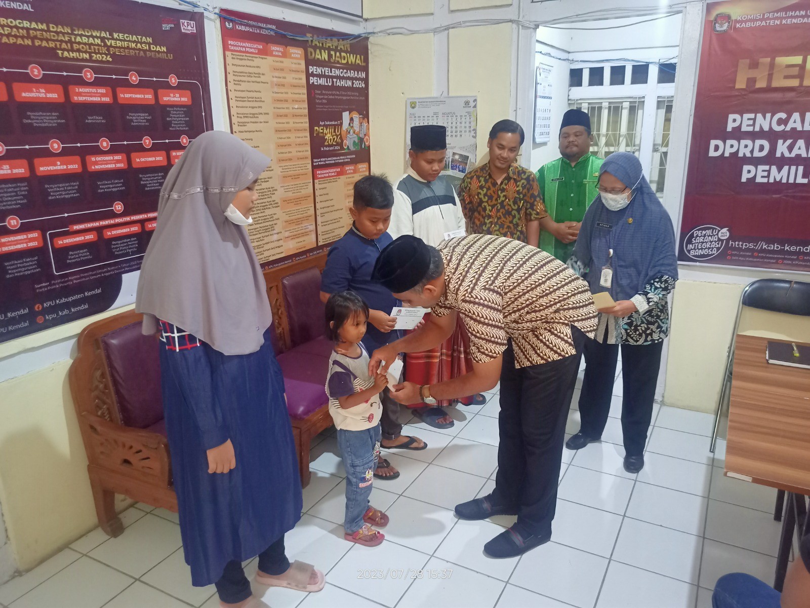 Komisi Pemilihan Umum Kabupaten Kendal memberikan santunan kepada sejumlah anak yatim/piatu. Acara penyerahan santunan dilakukan pada Jumat (28/7) di kantor KPU Kabupaten Kendal yang dilakukan oleh Anggota KPU Kabupaten Kendal, Rinto Wardoyo dan Sekretaris KPU Kabupaten Kendal, Benny Nuggraha. Rinto menyampaikan bahwa pemberian santunan kapada anak yatim/piatu di sekitar lingkungan kantor merupakan wujud rasa syukur dan kepedulian pegawai KPU Kabupaten Kendal.