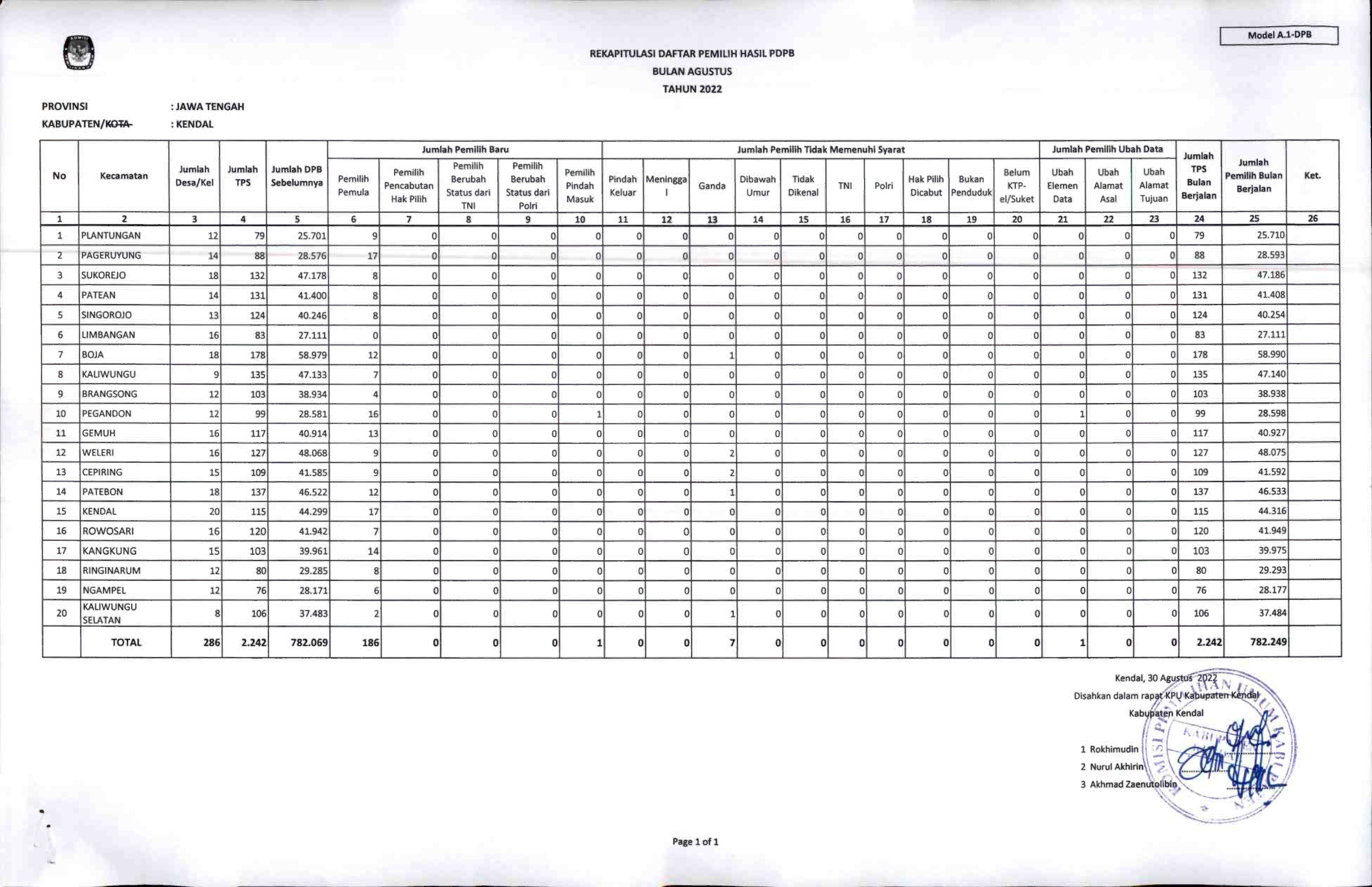 Sedangkan daftar perubahan pemilih dapat diunduh di https://bit.ly/modelA-DPBAgustus2022