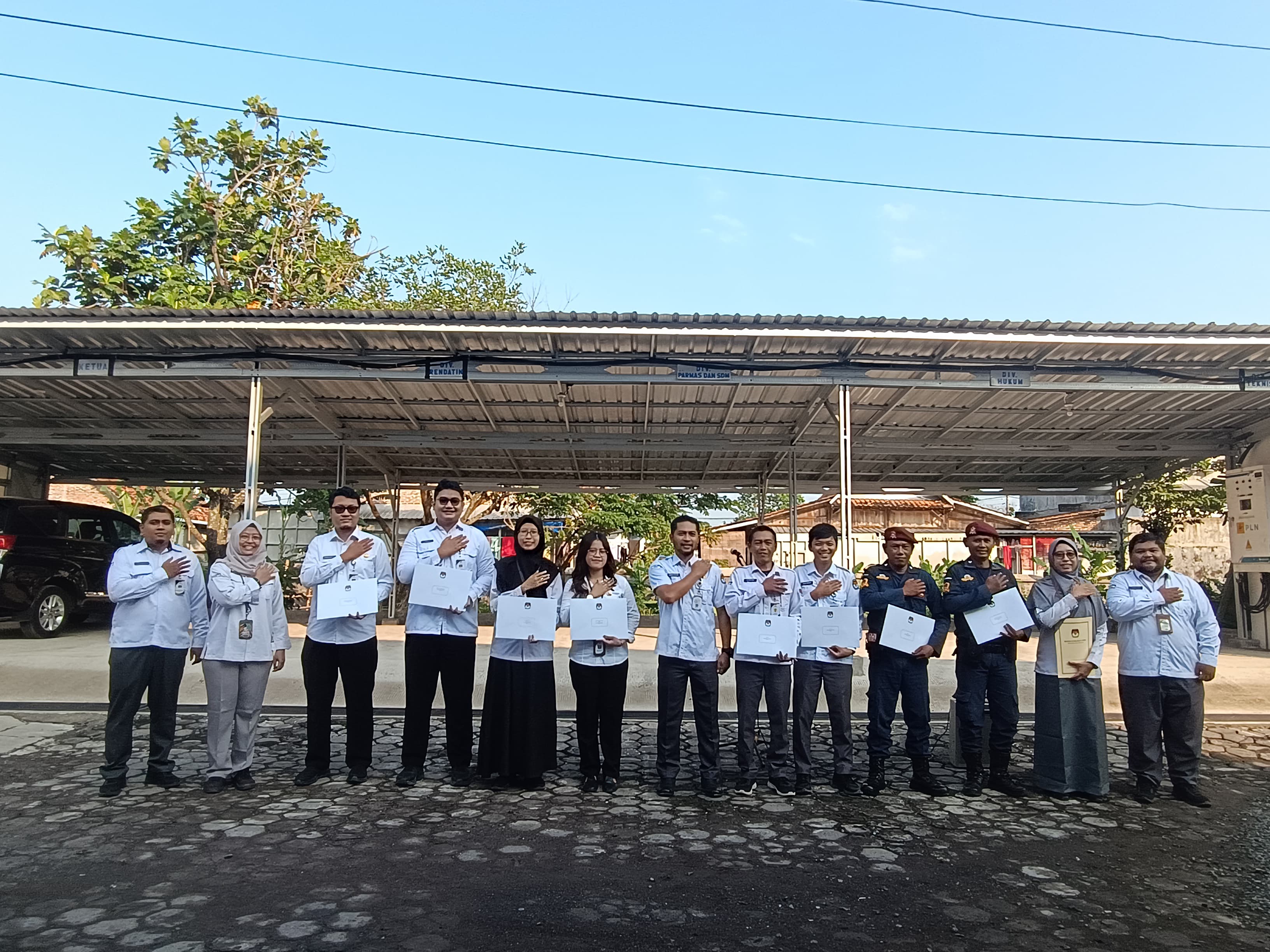 Kendal – Pada Senin (14/7) KPU Kabupaten Kendal melaksanakan Apel Senin Pagi di halaman Kantor KPU Kabupaten Kendal. Bertindak sebagai Pembina upacara Sekretaris KPU Kabupaten Kendal, memberikan pengarahan dan menyampaikan serangkaian agenda dan kegiatan KPU Kabupaten Kendal kedepan. Apel diakhiri dengan pemberian SK kepada CPNS dan PPPK di lingkungan KPU Kabupaten Kendal. Penyerahan SK kepada 5 CPNS dan 4 PPPK dilakukan secara langsung oleh Sekretaris KPU Kabupaten Kendal, Zaeny Ekhsan disaksikan oleh Anggota KPU serta seluruh Kasubbag KPU Kabupaten Kendal dan peserta apel.