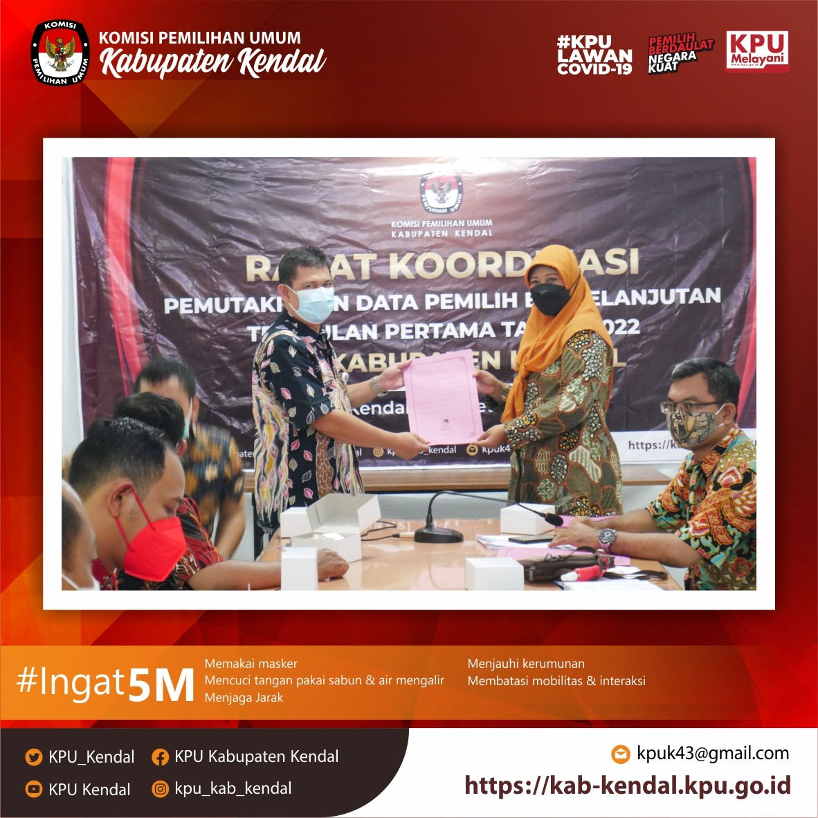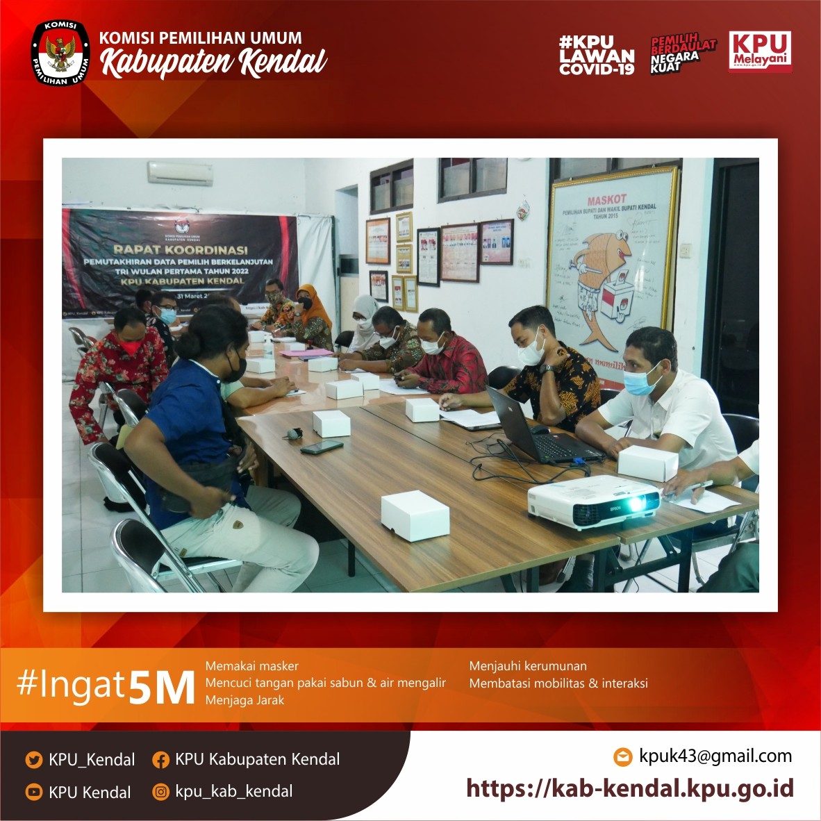 RAPAT KOORDINASI PEMUTAKHIRAN DATA PEMILIH BERKELANJUTAN TRI WULAN PERTAMA TAHUN 2022 KPU KABUPATEN KENDAL