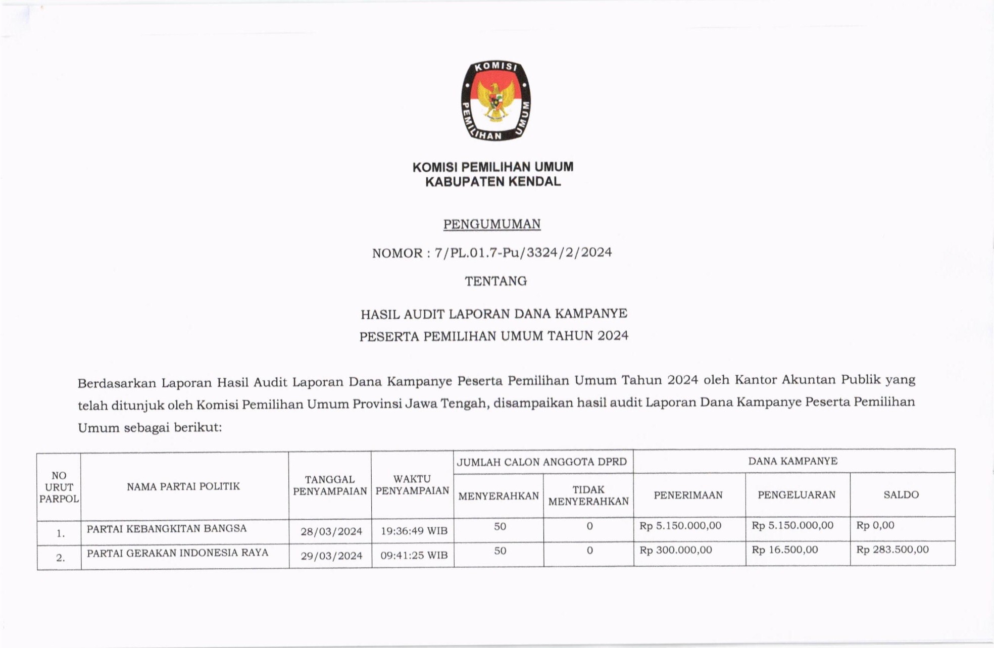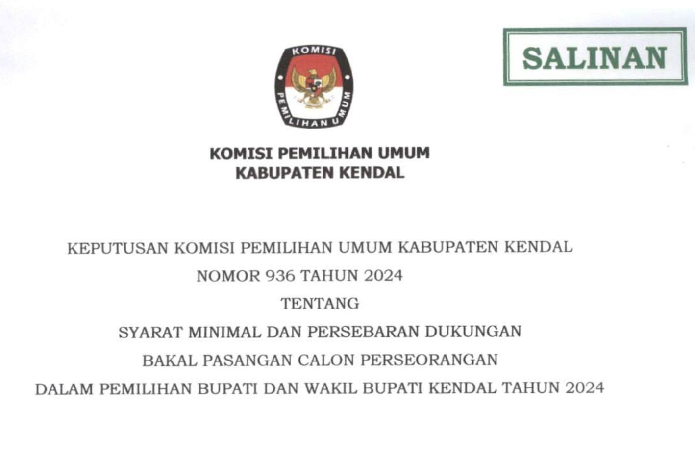 Dalam rangka pembentukan Calon Anggota Panitia Pemilihan Kecamatan untuk Pernilihan Gubernur dan Wakil Gubernur, Bupati dan Wakil Bupati, dan Wali Kota dan Wakil Wali Kota Tahun 2024, Komisi Pemilihan Umum Kabupaten Kendal mengundang Warga Negara Indonesia yang memenuhi kualifikasi untuk mendaftarkan diri menjadi Panitia Pemilihan Kecamatan untuk Pemilihan Gubernur dan Wakil Guberrrur, Bupati dan Wakil Bupati, dan Wali Kota dan Wakil Wali Kota dengan ketentuan sebagai berikut: